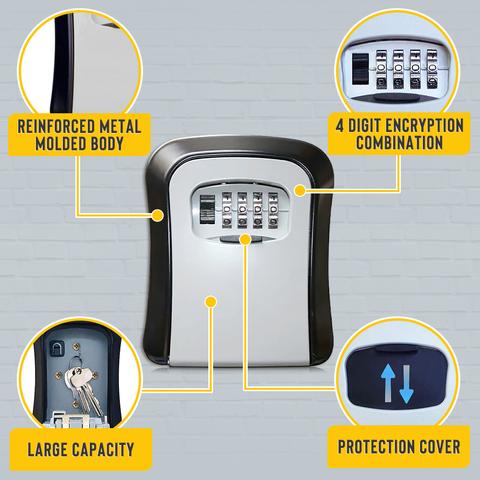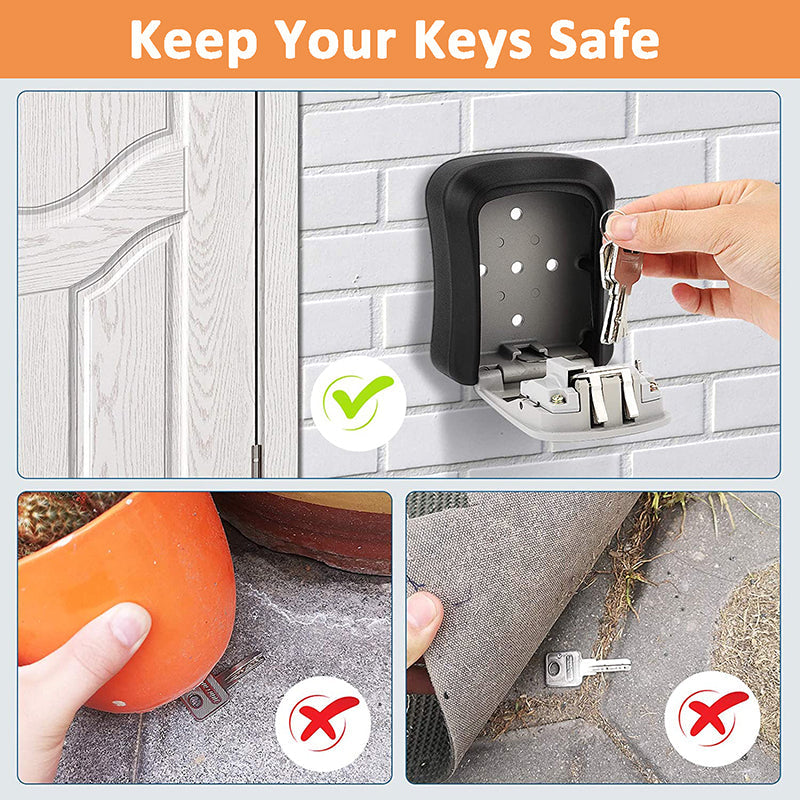 • Mot de passe numérique réinitialisable : Vous pouvez définir le mot de passe numérique à volonté, il existe environ 10 000 combinaisons de mots de passe à 4 chiffres, ne vous inquiétez pas si d'autres personnes cassent facilement le coffre-fort à clé, le coffre-fort à clé peut être partagé avec votre famille et vos amis.