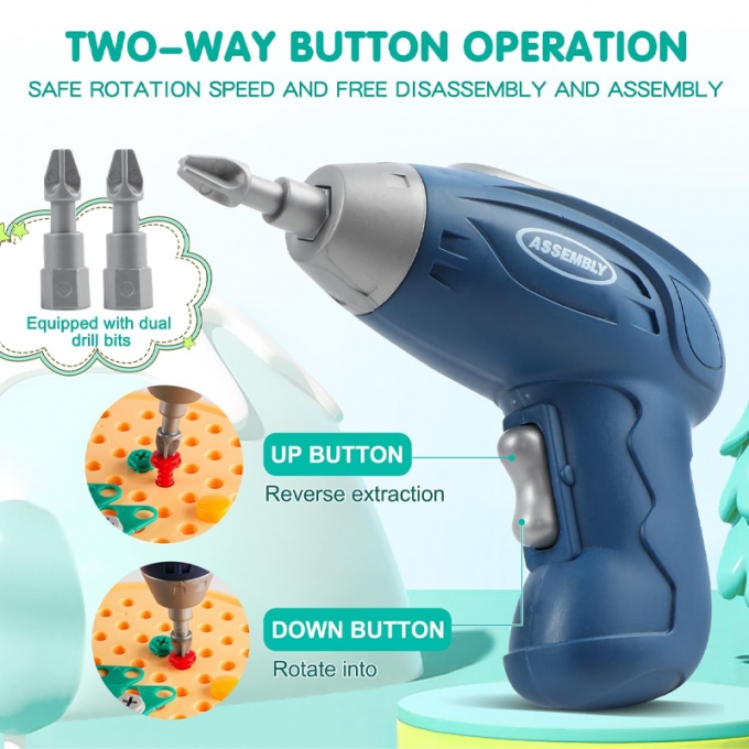 - Ours magique Montessori Play Toolbox : Notre ensemble de forets à mosaïque créatifs est fabriqué en plastique ABS de haute qualité, les bords sont polis. La perceuse jouet est alimentée par des piles AA (non incluses), la vitesse est lente, pas besoin de vous soucier de blesser l'enfant.