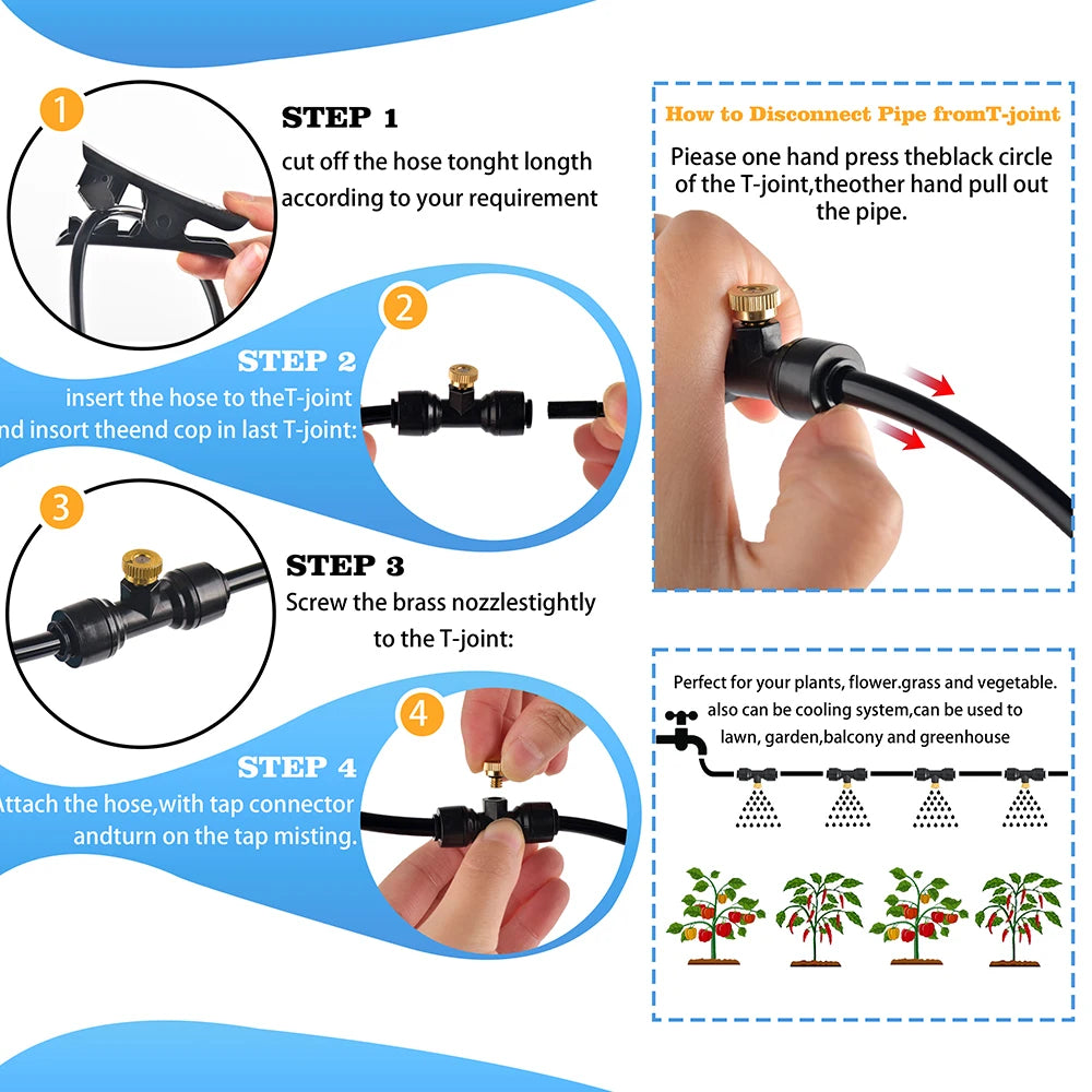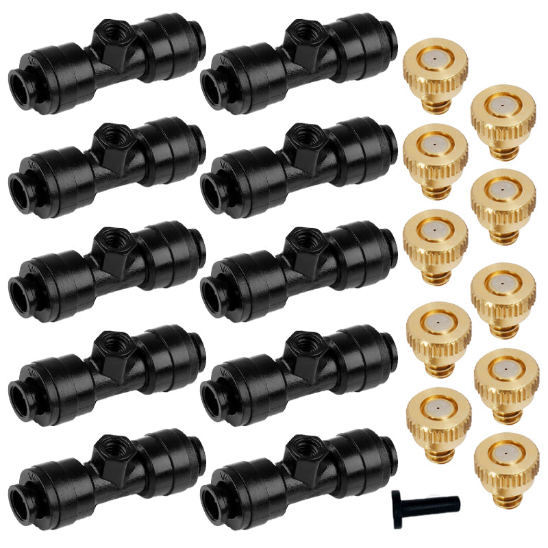 - Contenu de l'emballage : 10 buses de brume en laiton, 10 tees de buse de brumisation, 3 bouchons d'extrémité. La quantité suffisante est suffisante pour votre usage quotidien et votre remplacement.