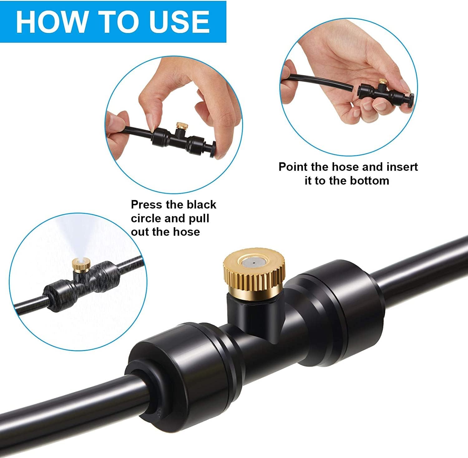 - Convient pour les tuyaux de 6,35 mm : ces tees de buse de brume sont fabriqués en plastique recyclable, qui se ferme bien, n'a pas de fuite, lisses et robustes, et peuvent vous servir pendant une longue période. S'adapte aux tuyaux de 6,35 mm, verrouillage coulissant rapide.