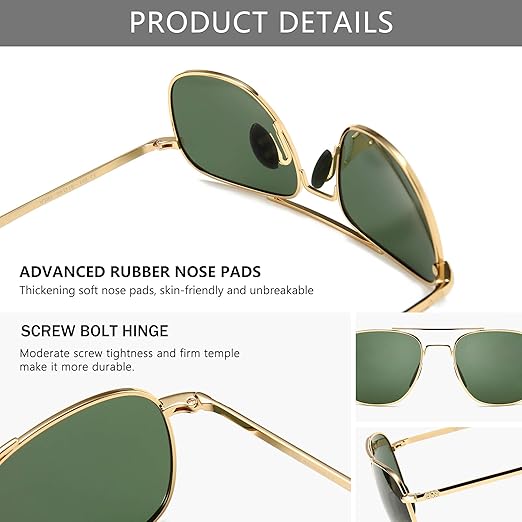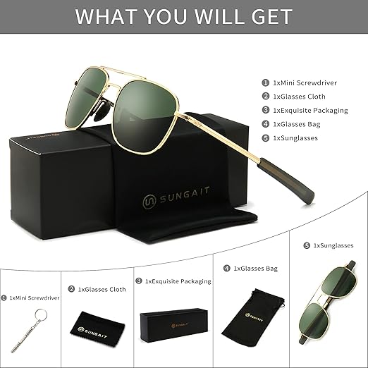 - Cadre en métal de haute qualité: Ces lunettes de soleil homme avec cadre en métal est solide et durable. Le processus de placage parfait fait ressortir le tempérament masculin dur tout en montrant une sensation exquise et lisse.