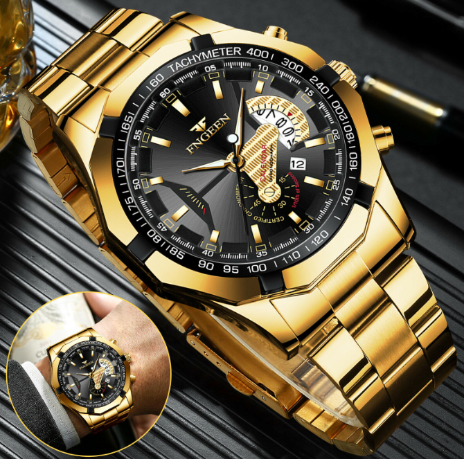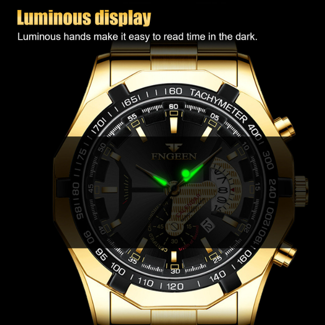 Montre à quartz avec calendrier de luxe doré