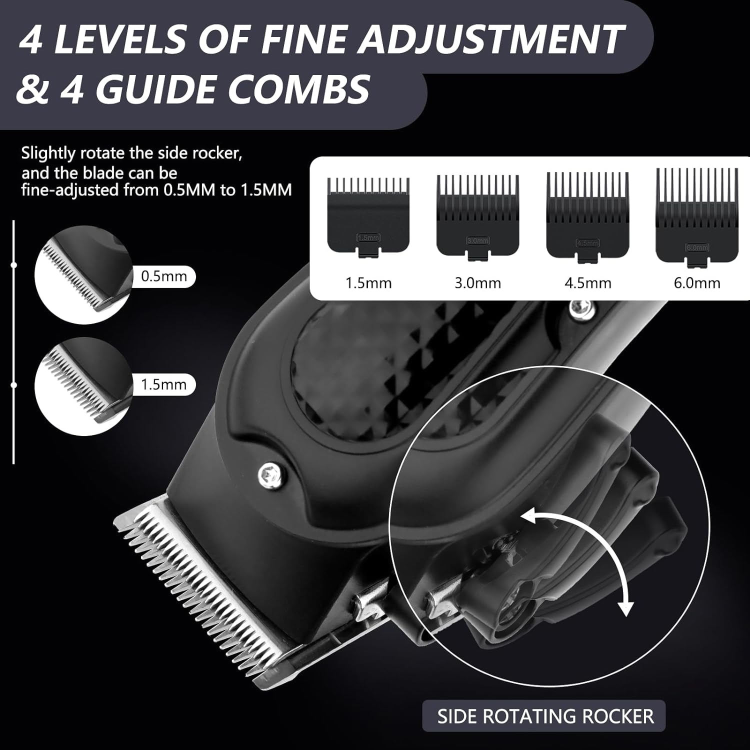 - Moteur sans balais silencieux et puissant: Tondeuse sans fil pour homme est alimentée par un moteur sans balais, elle fournit une forte puissance et peut couper efficacement tous les poils et la barbe. La conception de rainure au bas de la tête de coupe peut empêcher la tête de coupe de bouger pendant le travail. Cela réduit le bruit, le son ne dépasse pas 45 dB, pas besoin de supporter les problèmes causés par le bruit.